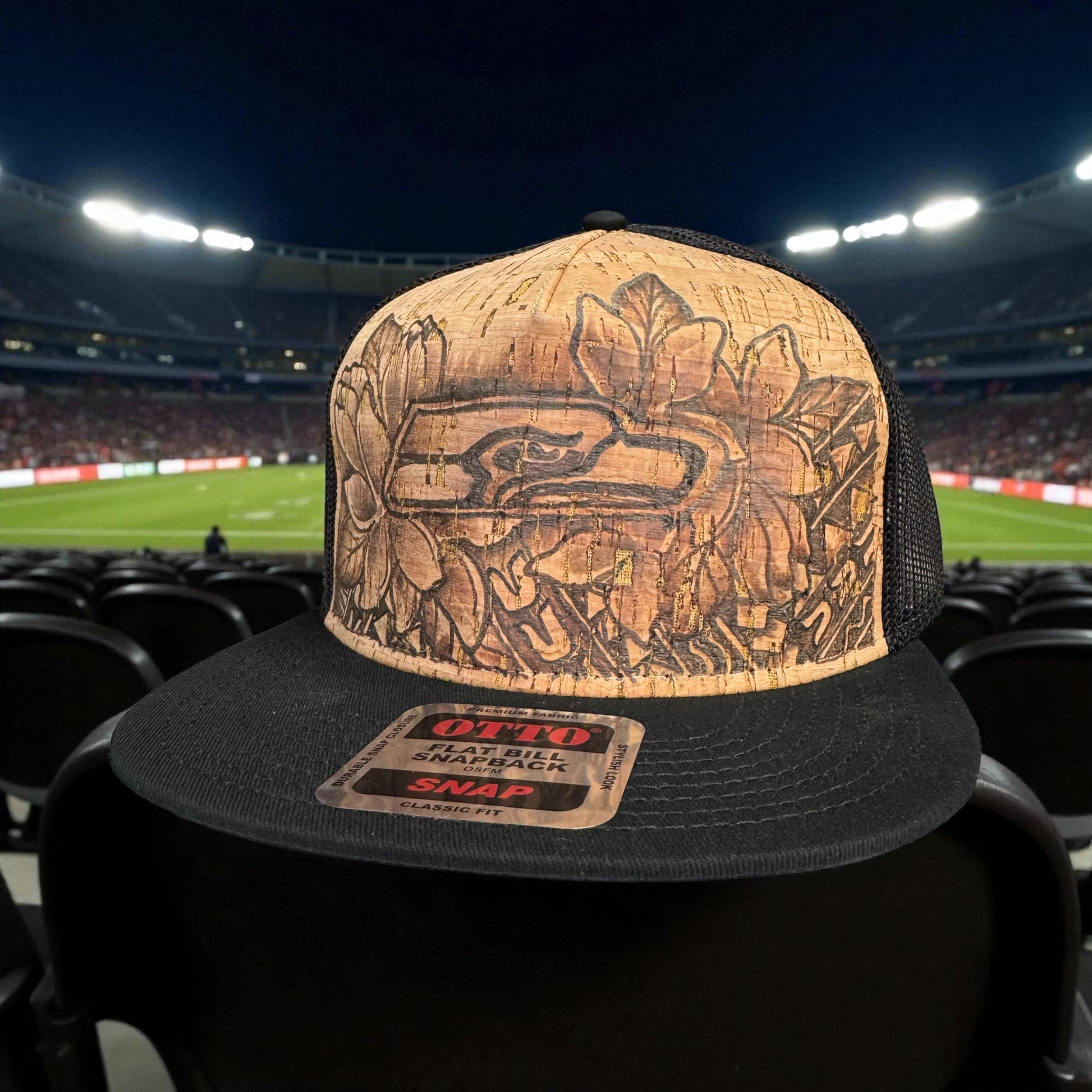 Add some Island flare to your style with a Custom One of a kind burned Cork trucker Hat. SnapBack, flat brim. Available in all teams.. Each Hat is burned freehand using Pyrography techniques making it a one of a kind… no two are going to be the same.